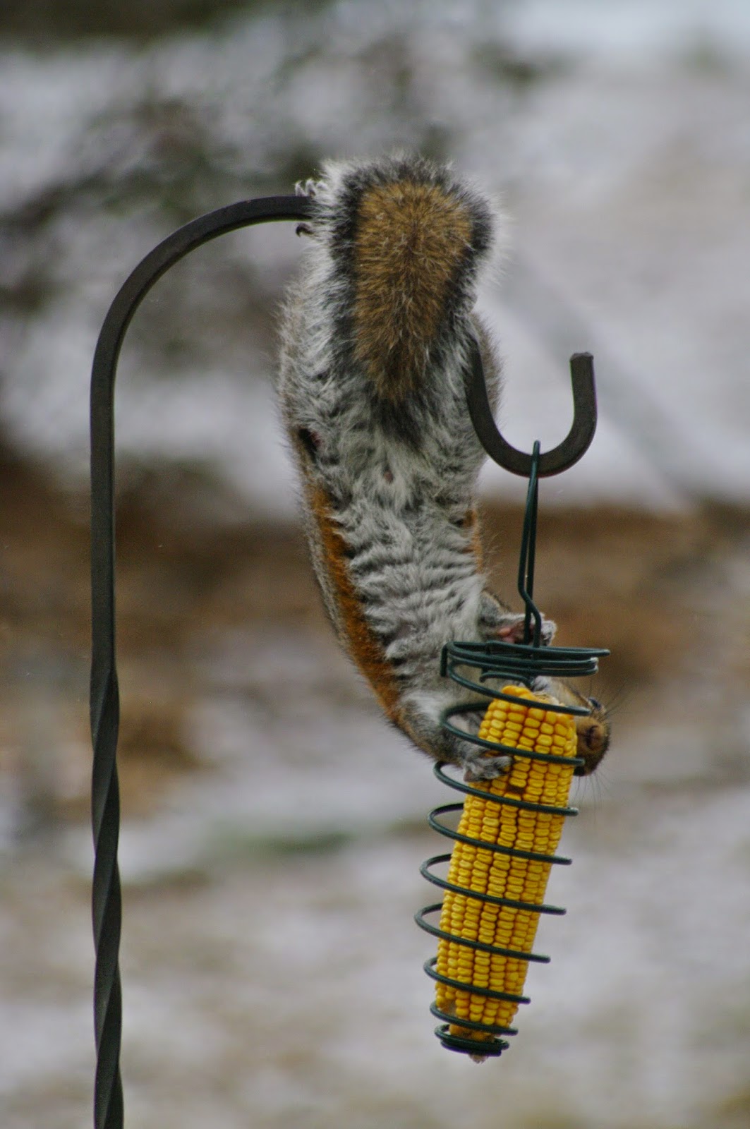 Now, where there are bird feeders there are usually squirrels. I am no exception. They got to a feeder I hung outside my bedroom window and did this to it...